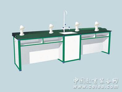 1.1.4結(jié)構(gòu):教師演示臺(tái)左側(cè)為PP化驗(yàn)水槽帶銅質(zhì)鍍鉻三聯(lián)高壓水嘴,中間為演示臺(tái)。采用專用腳墊,可有效防止桌身受潮,延長(zhǎng)設(shè)備的使用壽命。