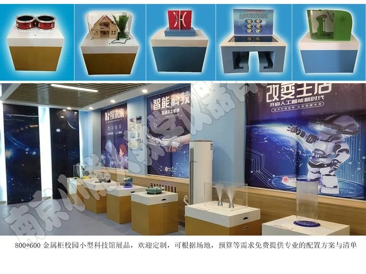 學校小型科技館由聲、光、電、力、磁、能、水、氣、新材料等九個方面的系列儀器組成。這些儀器集科學性、知識性、趣味性、操作性于一體,將光的反射、聲的傳播、力的分解、電的產生、水的循環、能的轉化、磁場變化等自然常識和科學原理以直觀的形式演示出來。學生親自操作,動腦動手,發現其中的奧妙,掌握其中的科學原理。