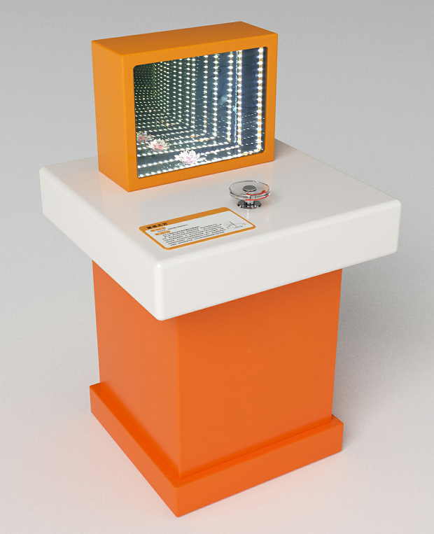 本展項(xiàng)由展柜上鑲嵌的顯示器和操作臺(tái)組成。觀眾可通過(guò)在操作臺(tái)上方揮手觸發(fā)觀看。