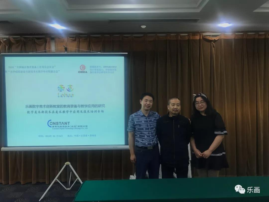 2019“全國城市教育裝備工作委員會年會”暨“書香校園建設及新技術在教學中應用報告會”于2019年5月24-25日在蘇州市會議中心舉行。期間,“樂畫數字美術創新教室的教育裝備與教學應用的研究”課題應用舉辦了專場活動,包括樂畫系列產品的展示、為蘇州市盲聾學校授牌樂畫課題示范校以及特邀美術課標專家尹少淳教授演講,并由江蘇省新技術新產品試點代表學校鎮江外國語學校王譽儉老師和揚州大學附屬中學東部分校黃河老師與參會教師們做了教學交流,康智達公司為參加活動的來自全國城市教育裝備的領導和專業教師們提供了樂畫美術教學系列軟硬件的培訓與體驗并贈送了樂畫電腦繪畫教程和樂畫繪畫軟件。