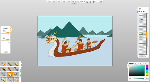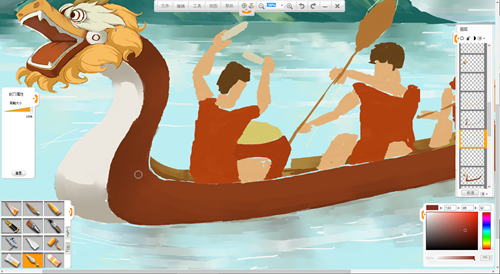 現在來創作一幅端午節劃龍舟的作品吧。