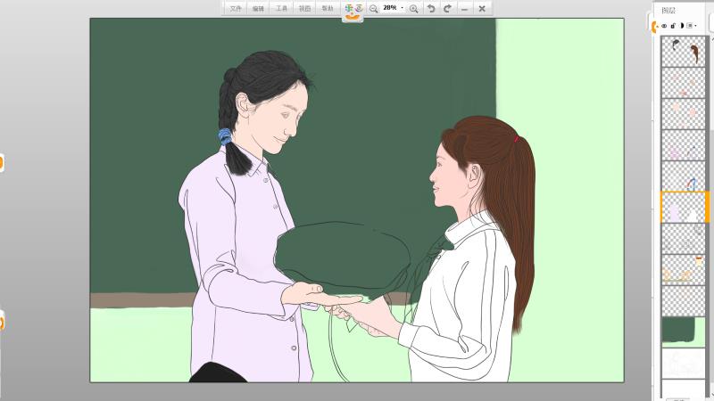 第四步:用鉛筆筆觸繪制草圖,定好構(gòu)圖和人物與物品比例關(guān)系。