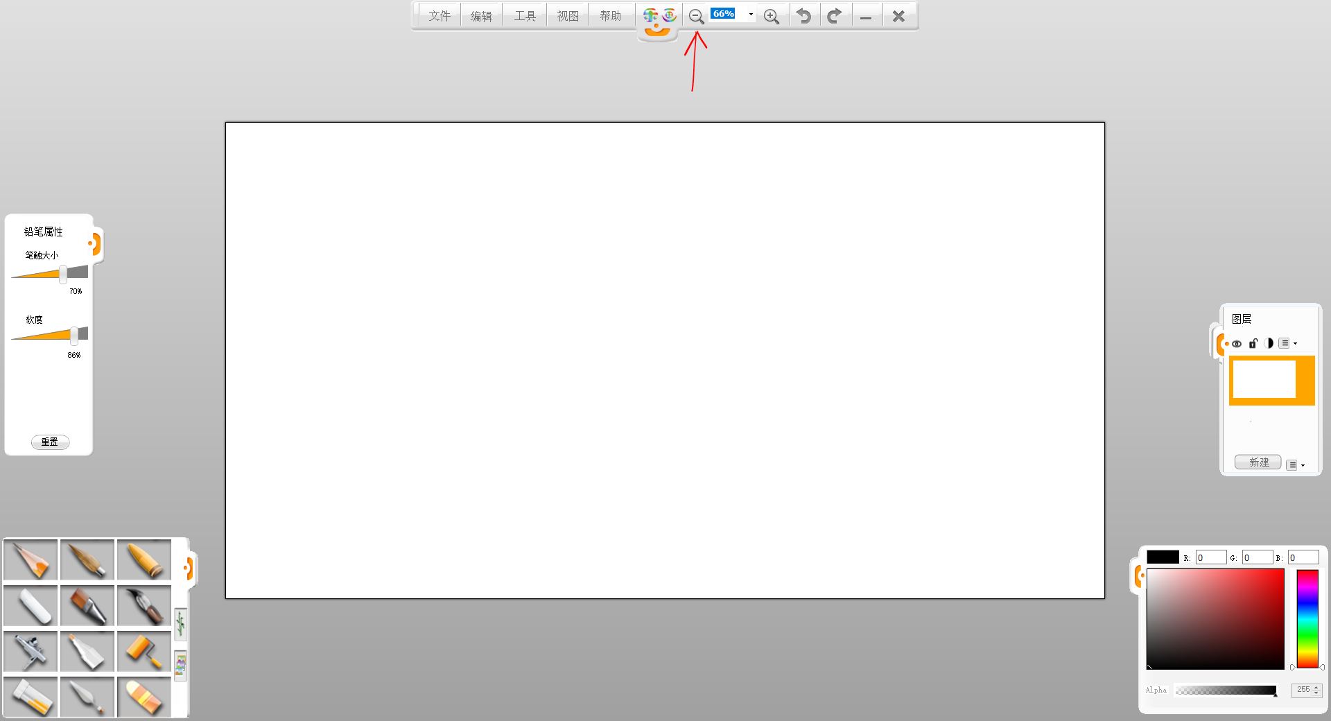 2.使用縮放工具,把畫卷拉遠(yuǎn)縮小,方便繪制全局。