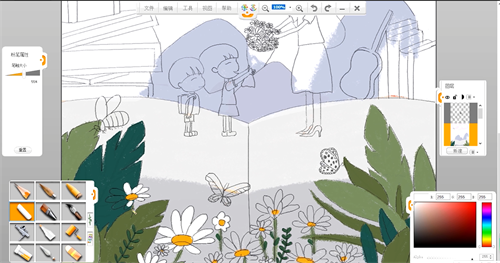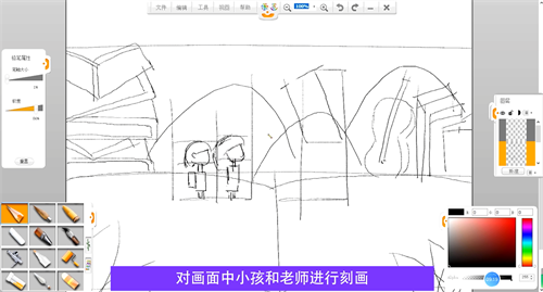 對畫面中小孩和老師進(jìn)行刻畫