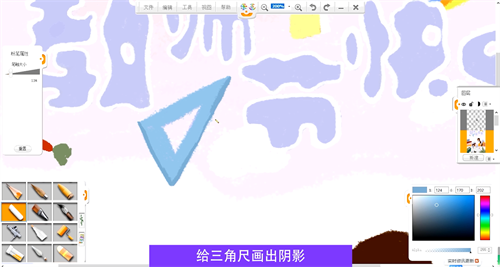 給三角尺畫出陰影,使用同樣的方法畫出葉子、花朵、書本的陰影