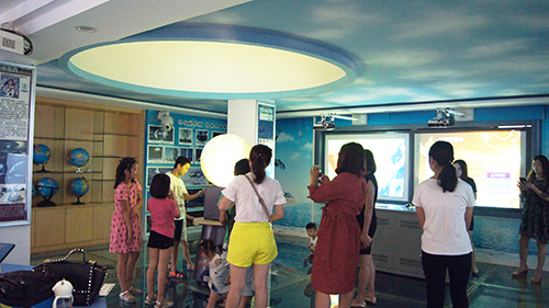 數(shù)字地理室,不僅有模擬海洋、天空、還可以通過(guò)環(huán)形巨慕觀看地理知識(shí)短片,讓你有身臨其境的體驗(yàn)。