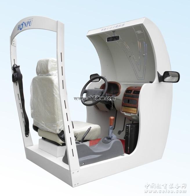 遵循“駕駛技能分解,模擬實車分工”的組訓理念。采取光以提高心智技能為主要訓練內容的模擬訓練,然后再進行以提高綜合駕駛技能為主要訓練內容的實車訓練。如此交替遞進,循環往復,從而完成汽車賀駛技能整體訓練的過程,達到既降低訓練成本,又提高訓練效率的目的。 3、汽車駕駛模擬器座艙結構組成。 智能汽車駕駛模擬器具有座艙和互動的視景系統,屏幕數量(一個或三個)。并具有錯誤駕駛操作記錄和提示功能。其操縱機件的相對位置與所模擬的汽車一致。操縱力度接近,性能工作可靠,靈活,低噪音。 座艙只有與所模擬的汽車駕駛室駕駛操作工位相似的空間,實車汽車駕駛可調節座椅、包含了‘五大’操縱機構(自動回位的轉向盆、離合器踏板、制動踏板、加速踏板、駐車制動器操縱桿)、變速器操縱桿(倒檔、一檔、一檔、三檔、四檔、五檔和空擋;自 動檔只合前進檔、倒車檔和駐車檔)、安全帶、儀表盤、喇叭按鈕、電源開關、點火開關、轉向燈開關、警示燈開關、示寬燈開關、 照明燈開關、雨刮器開關、遠光燈開關、近光燈開關、揚聲器、USB2.0即插即用數據線、非接觸式線性磁控傳感器采集系統、三維視景采集計算系統,視景顯示屏等實物組成。汽車駕駛模擬器模擬駕駛運行時,操縱機件操作與視景顯示響應比滯后時間小于50ms。 學員通過操作不同的操作部件,經過各自的傳感器產生不同的操作信號,這些操作信號通過數據采集卡傳送給計算機,經過各種訓練模型的逼真遠算,最后在顯示屏上同步輸出與操作相對應的三維場景與各種聲音。