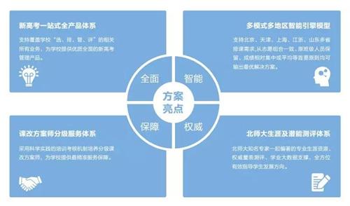 新高考教務管理產品系列是科大訊飛為學校有效應對新高考后教務管理的諸多難題推出的教務管理一站式解決方案。深入調研浙江、上海、北京、天津、山東等多地的新高考走班實例,結合各地新高考政策,依托訊飛領先的人工智能和大數據技術打造自主專利的算法引擎,有效解決學校資源不足、學生志愿滿足率低的問題,充分幫助學校優化課程安排策略和提升排課效率。