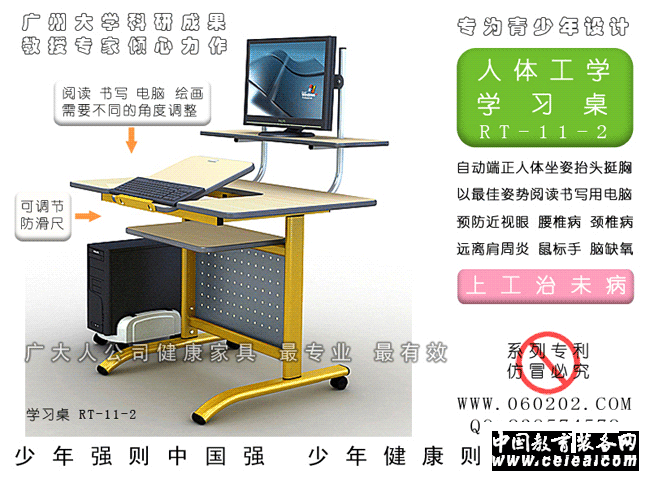 健身學習桌 專為青少年設計 一桌等于多桌:書桌,電腦桌,畫桌,健身桌。 ·可坐可站輕便升降。 ·自動端正人體坐姿。 ·預防近視眼脊椎病。 ·預防肩周炎鼠標手。 ·顯示器可被控制,家長放心上班去。 FITNESS HOME WORK DESK Multifunctional movements,One desk has more functions: common desk, computer desk,fitness,drawing table, designing table. ·As general desk :The height and the angle can be adjust,prevent from short sight , lumbar and neck hurt . ·As special desk :Can study and work at stand pose, and make your chine release, prevent illness . ·As design table :The angle and the height can be adjust ,and attach a big size board .No power needed ,low price. ·Equipped with fitness equipment, doing exercise when you are working, Expendable 119 kilocalories in a hour, lose weight 20kg in a year, redace office obesity.