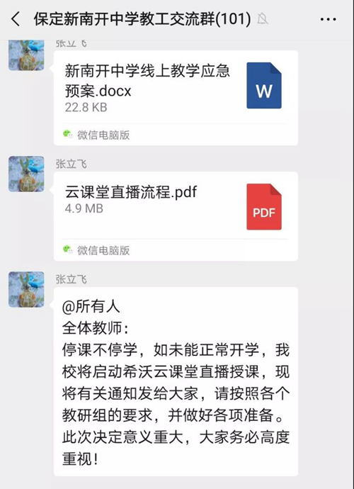 新南開中學于2月10日開啟“云課堂”在線直播授課。學校迅速制定了線上教學實施方案,教學管理小組由教務處牽頭、年級組長組織安排課程。