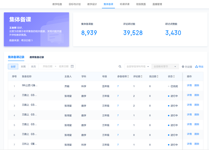 通過“線下集備明確方向-線上研討集思廣益-線下研討達成共識”的混合式新型教研模式,打破了時間和空間的限制,讓教師隨時隨地都能參與到教學研討中。不僅如此,教師還可以利用課程資源庫進行教學資源的共享與交流,提高教學資源的利用效率。同時還能實現教學教研資源共享、共創,讓校本資源得以沉淀。