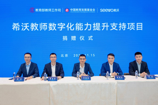 數(shù)字引領未來,強師成就教育。11月15日,希沃教師數(shù)字化能力提升支持項目捐贈儀式在京舉行。教育部黨組成員、副部長鄭富芝、教育部教師工作司司長任友群、中國教育發(fā)展基金會秘書長王建光、廣州視睿電子科技有限公司(希沃)董事長鄧毅剛等出席儀式。