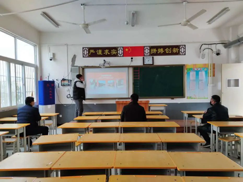 鹿邑實(shí)驗(yàn)中學(xué),往日書聲瑯瑯的校園如今變得一片沉靜,仿佛只能聽到春日柳枝抽芽的低語。可是走過操場,走進(jìn)教學(xué)樓附近,卻聽見了三尺講臺傳來熟悉的聲音。