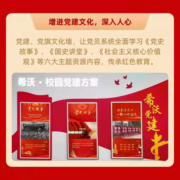 希沃打造的黨建活動室的建立將成為企業(yè)黨員的精神家園和學(xué)習(xí)教育活動的前沿陣地,讓黨員開會有會場、學(xué)習(xí)有陣地、議事有地方,營造黨課學(xué)習(xí)氛圍和提升黨員學(xué)習(xí)勁頭。