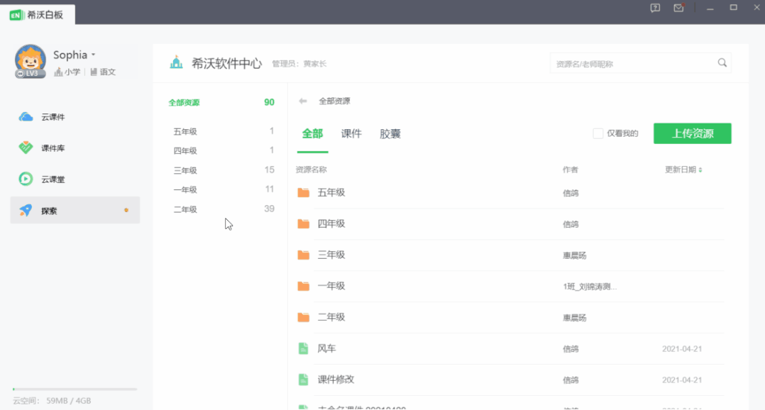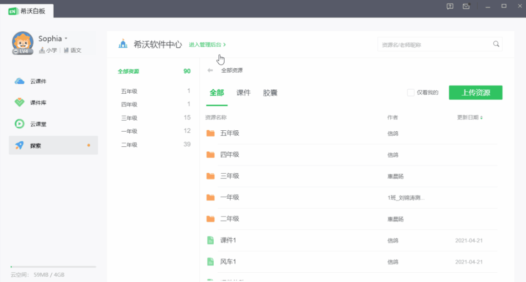 打開【我的學校】,無論是想分享自己的課件還是膠囊到校本資源,都可以通過上傳資源進行批量上傳