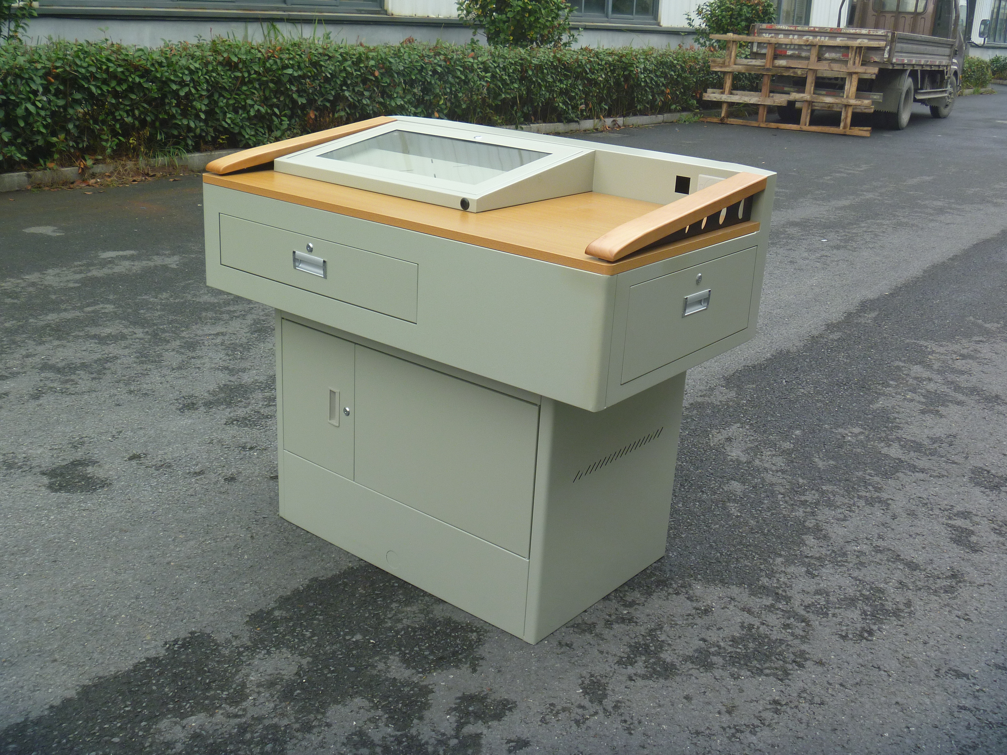 產品詳細介紹尺寸: 1150mm(長)*720mm(寬)*1000(高) 1,桌面邊、角采用平滑圓弧過渡、去毛刺,表面采用整體酸洗磷化及靜電噴塑處理;講臺具備防盜、防火、防塵、散熱強等功能。, 2,鋼木結合工藝。多媒體講臺采用1.0mm-1.2mm優質冷軋鋼板制作;二側采用實木扶手,桌面采用耐刮木面板設計,可以很好的防止靜電、漏電,冬季老師手扶上去不冷,使用起來更人性化。外型大方、美觀。講臺內所有鎖鑰匙通用,標配2把鑰匙。 3,適用于19-23.5寸液晶顯示器、顯示器角度180度內任意調節至舒適的角度,老師上課時可得到最佳的觀看視覺效果;顯示器安裝方便、快捷,只需一人站著,自由舒適環境下即可安裝,改良了陳舊款式講臺安裝顯示器時需要2人蹲進桌子進行安裝顯示器費時費力的缺陷。鍵盤采用朝前左側抽拉式,方便操作;下體柜內配備一塊高度可調式擱板。 4,講臺右側面設有抽拉式抽屜,用于放置實物展示臺。 5,講臺內可放設備:教學終端、實物展示臺、鍵盤、顯示器、電腦主機、功放、音響等教學設備。 6,關閉時所有設備不外露,必須借助鑰匙才能進行操作,安全性更高。 |