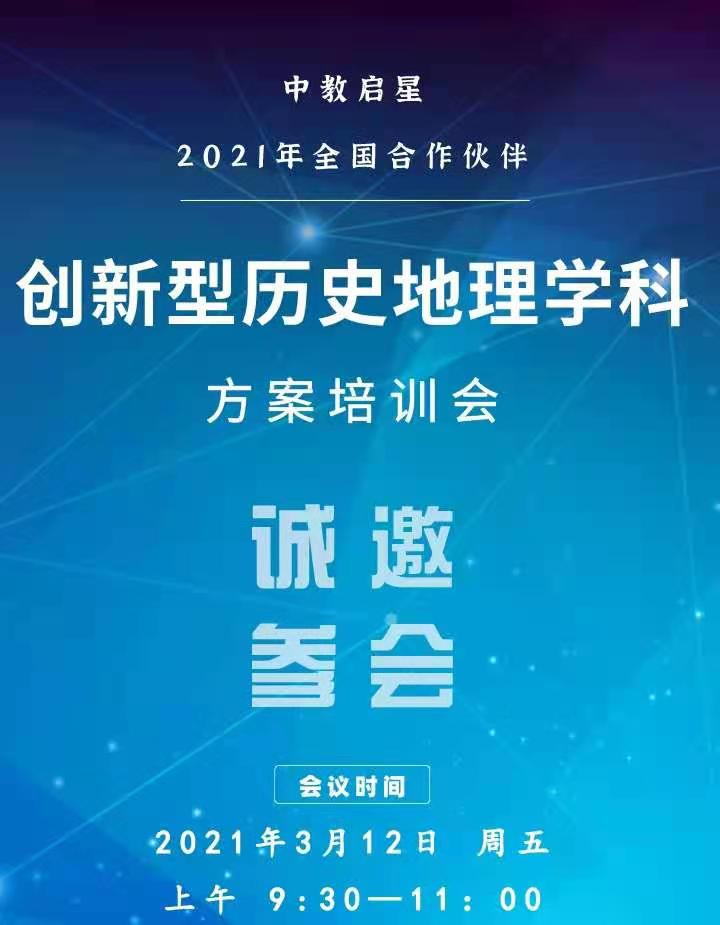 陽春三月,大地回春。3月12日上午9:30,中教啟星隆重召開“中教啟星2021年全國合作伙伴創(chuàng)新型地理歷史學(xué)科方案培訓(xùn)會”。會議采取線上直播的形式進(jìn)行,中教啟星營銷副總裁李永望、教育研究院副院長王秋平以及VR業(yè)務(wù)部經(jīng)理劉東昊為本次會議做講解。