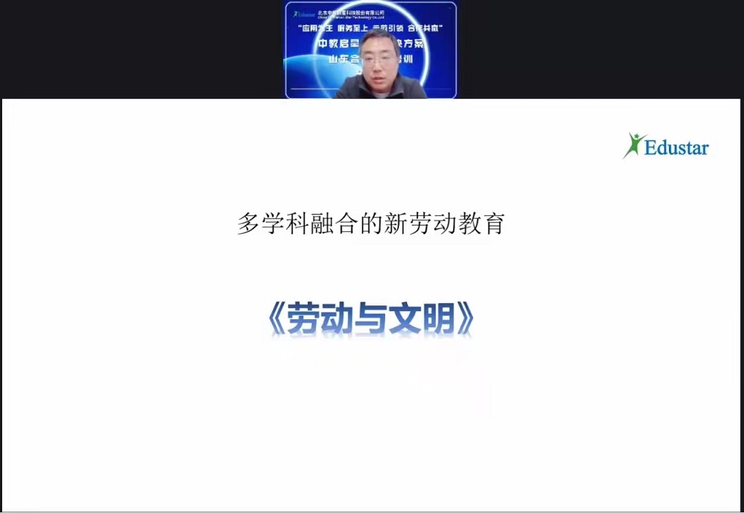 整個培訓研討會首先由山東辦事處經理吳真偉和大家交流了疫情常態化下的山東功能教室落地思考,再由公司項目部、方案部分享了中教啟星獨家原創的地理、歷史、VR和勞動教育方案。