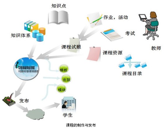 集成標(biāo)準(zhǔn)化的網(wǎng)絡(luò)課程制作系統(tǒng),教師可非常方便地整合各類資源制作發(fā)布網(wǎng)絡(luò)課程,并應(yīng)用于課程教學(xué)。平臺(tái)將組成課程的各項(xiàng)教學(xué)功能以模塊化形式劃分,通過教師自主選擇搭配整合形成完整的網(wǎng)絡(luò)課程,操作簡(jiǎn)單,易于使用;同時(shí)提供教案編輯、試卷生成、課件制作等一系列易用實(shí)用的輔助工具,從而完美實(shí)現(xiàn)網(wǎng)絡(luò)課程的流程化制作。