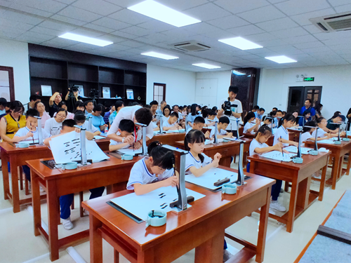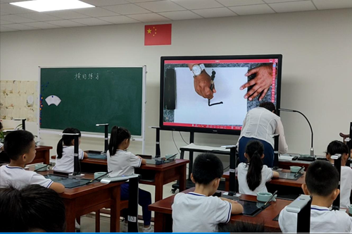 在6月下旬的書法特色教育創(chuàng)建與管理觀摩學(xué)習(xí)活動中,老師們觀摩了沙面小學(xué)姚丹校長執(zhí)教的書法示范課《橫的練習(xí)》,切身感受到吉星智慧書法課堂的魅力,體驗科技與書法的結(jié)合。