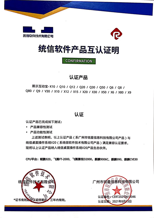 統(tǒng)信認(rèn)證證書(shū)(展示互動(dòng)寶、無(wú)線微錄儀)