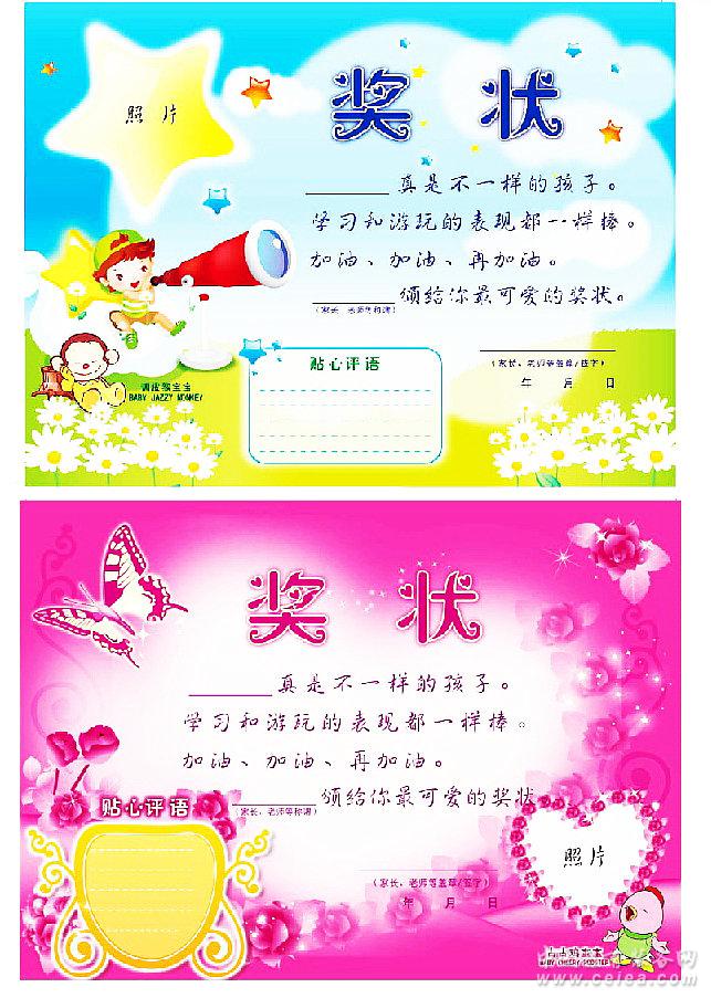 ***【兒童獎狀】的一面是藍色另一面是紅色,雙面都印上可愛、溫馨的獎勵文字和Q版“12生肖全家福”卡通圖案,讓老師及家長對孩子的進步表現予以獎勵。這種精神的獎勵,對孩子心靈的正面影響,遠遠超過物質的獎勵。