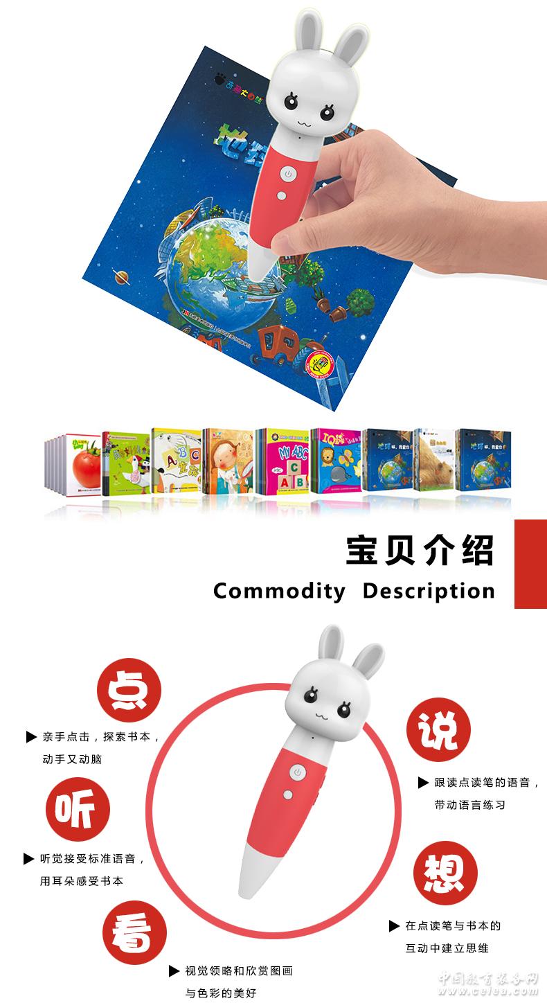 吉美大兔子點讀筆是采用國際最新光學圖像識別技術和先進的數碼語音技術開發而成的新一代智能閱讀和學習工具,能同時實現點讀、聽讀、跟讀、錄音、娛樂等諸多功能。