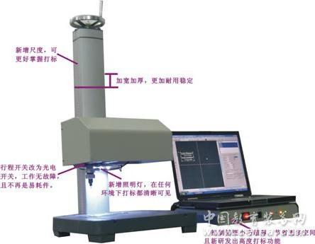 產品詳細介紹基本原理: 通過計算機控制打標針按照電腦編輯好的字符圖形軌跡運動,同時打標針在壓縮空氣的作用下對工件作高頻沖擊,從而在工件上形成字符和圖形。 主要性能: 基于Windows 98 / 2000 / XP / NT 平臺的操作軟件,編輯功能強大,使用更方便。可打印中文、英文字符、阿拉伯數字、任意圖形、可自動進行流水號打印、國際標準VIN碼打印、刻度打印。 主要特長: 與國內外氣動打標機比較,本廠的主要獨特之處是: 1、采用升降式雙立柱結構,適應性更廣,定位更精準。(一般打標機為單立柱) 2、采用四根進口方型直線導軌,打印精美度大大提高,從而實現了高速打印。(同類氣動機二根導軌) 3、打標頭(針套)采用特殊的耐磨材料經特殊工藝制作而成,耐磨性大大提高,使用壽命提高了幾十倍。(普通打標頭針套均采用銅材制作,耐磨性差,磨損后影響打標精美度) 4、平面標牌夾具設計緊湊且與電腦連接,實現智能化半自動打印,符合人機工程學原理,使用特別方便。(同類打標機即使有夾具也沒有同電腦連接,不能實現半自動打印) 5、打標頭的排氣裝置是我廠的創意設計,既降低了噪音又極大地提高了操作人員的舒適性。 6、一機多用,同一臺高度尺寸有限的臺式打標機,還可在任意大小或任意高度的物體表面的任意位置上打印。這是我廠的最新創意設計。 7、同一臺打標機同一個打標頭,既能在鋼鐵上打標又能在不干膠紙上打標(一般氣動打標機能在鋼鐵上打標,但很在難紙上打標)。 應用范圍: 1、汽摩行業:對車身、車架、底盤、大梁、發動機、連桿、汽缸、活塞、缸套、齒輪、水泵、彈簧鋼板等打印出廠編號、生產編號、生產日期、名稱、商標等內容; 2、機械行業:對各種機械零部件、機床工具、五金制品、鋼管、套管、接箍、牙輪、泵體閥門、法蘭盤、緊固件打標; 3、儀表、機電設備的打標; 4、塑料制品、皮革制品打標; 5、在鋁、銅、不銹鋼、PVC等材質的標牌(銘牌)上打印數據、出廠編號、生產日期等; 6、刻印刻度盤。