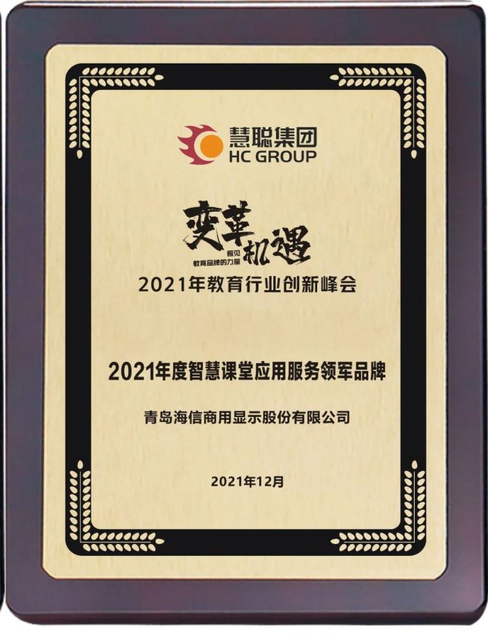 今天下午,由慧聰教育網(wǎng)主辦的2021年教育行業(yè)線上創(chuàng)新峰會盛大舉行。此次創(chuàng)新峰會,以用戶為主線,以場景為導(dǎo)航,以政策為引導(dǎo),甄選出新教育生態(tài)下的品牌,由此誕生了2021年教育行業(yè)創(chuàng)新品牌榜單。榜單涵蓋了智慧教育應(yīng)用、行業(yè)品牌創(chuàng)新、健康校園應(yīng)用以及科技賦能教育四大版塊,海信商用顯示公司“三個(gè)課堂+”系統(tǒng)解決方案榮獲2021年度智慧課堂應(yīng)用服務(wù)領(lǐng)軍品牌獎。