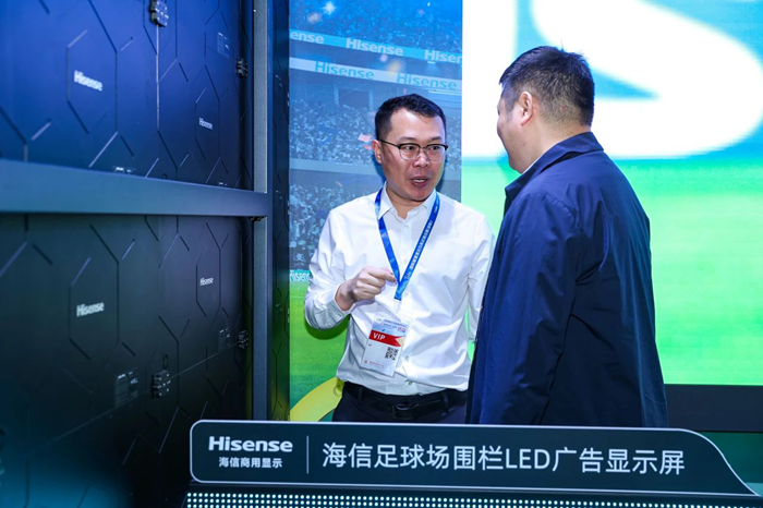 體育場場景則是還原了線下體育觀賽,通過“LED氛圍屏+SP系列圍欄屏”組合的方式,打造身臨其境的觀賽體驗。作為世界杯、歐洲杯等多屆世界大型體育賽事的贊助商,海信LED產品在全球多個大型專業足球場落地,為球迷打造更加沉浸式的觀賽體驗。另外,觀眾們還可近距離體驗海信多款小間距LED顯示屏,感受海信LED豐富的產品矩陣。