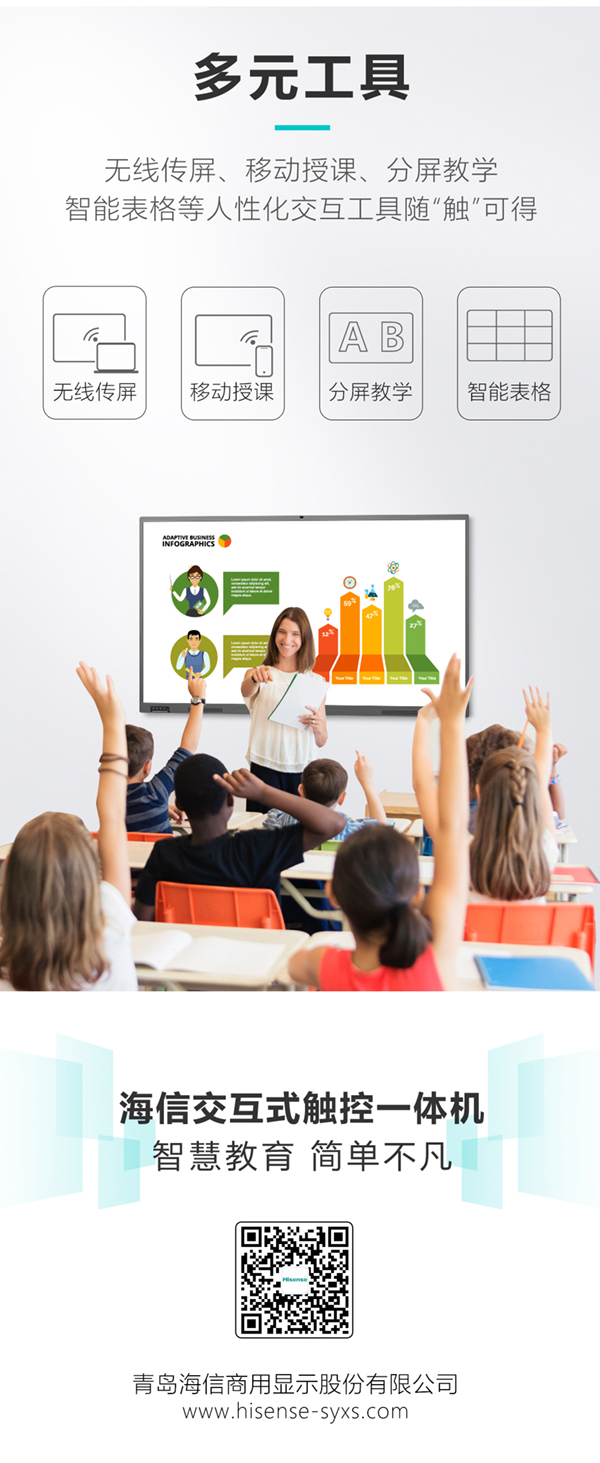 海信交互式觸控一體機增強版WR系列,具備差異化功能,配置高且用戶體驗好,創新性的 加入AI智能識別,NFC權限管控,以及攝像頭和麥克風功能,迎來全新智慧課堂。將觸控層與顯示層全面貼合,濾除空氣層減 少反射,可視角度更高,畫面更清晰。內置攝像頭人臉識別進行教室設備管控,秒 刷人臉簡化解鎖操作,保障設備安全。全流程教學數據一站式融通,實現高效互動 課堂。高配教學系統,高速引擎運轉工作,幫助多 媒體課件流暢播放、不卡頓。密碼鎖,按鍵鎖,NFC聯動校園一卡通等多 重設備權限管理方式,助力設備管控,保障信 息安全。全新白板,全新教學工具,支持智能繪圖,智 能繪表,智能書寫,智能無處不在,讓教室更 智慧,教學更省力。