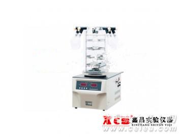 產品參數: ◆冷凝溫度: -50℃ ◆真 空 度:< 20Pa ◆凍干面積:0.12㎡ ◆盤裝物料:1.2 升 ◆捕水能力:3kg/24h ◆樣 品 盤:Φ200mm×4層 ◆電源要求:220V 50Hz 850W ◆主機尺寸:380×600×345mm