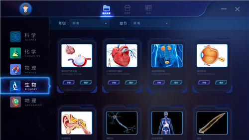 生物學(xué)科內(nèi)容以直觀化立體化的3D知識模型,進行全方位多角度的展示,輔助學(xué)生觀察與學(xué)習(xí)知識內(nèi)容,互動教學(xué)實踐,引導(dǎo)學(xué)生相互比較、探究、鑒別,深入剖析知識點。