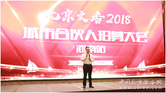 2018年4月26日,北京文香城市合伙人大會河南站鄭州美盛喜來登酒店隆重舉行。會議邀請100余位合作伙伴參會,到場參會人數超過200人,大家同聚一堂、共賞新品、同心筑夢、共話明天。北京文香副總裁王俊昆,河南省銷售總經理鮑振川以及銷售總監馮軍強,體育錄播事業部副總經理王瑩,校園電視臺技術負責人巨冬冬,和盛前沿營銷副總王鷹,迪樂姆市場部經理李亞茹等參加本次會議。