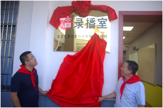 儀式過后,朱玉榮董事長與教育體育局局長龍平為文香錄播教室揭牌。