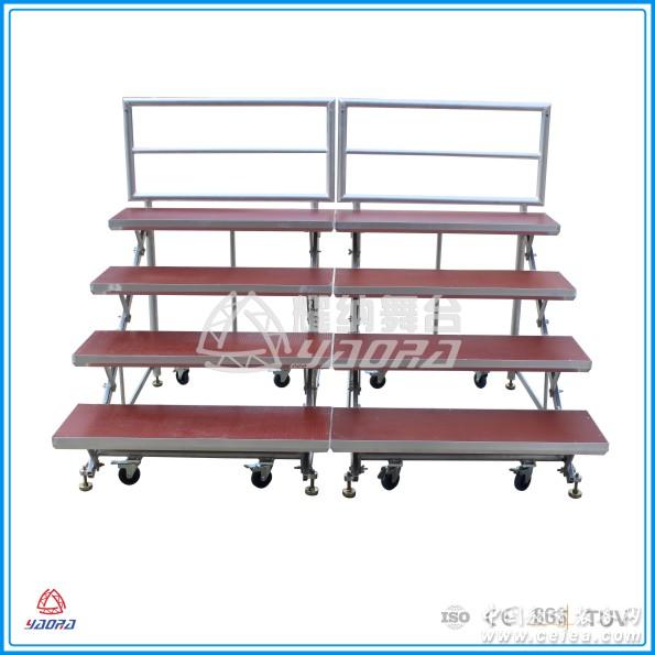 產(chǎn)品詳細(xì)介紹產(chǎn)品名稱:鋁合金折疊帶輪合唱臺 產(chǎn)品材質(zhì):鋁合金支架 面板有:鋁合金、木板、木板+地毯三種,可以根據(jù)客人的喜好選擇 產(chǎn)品規(guī)格: 主要規(guī)格有:1.2米*1.1米*0.8*(三層)。1.2米*1.4米*1米(四層)。1.2米*1.7米*1.3米(五層)。(長*深*高) 用途:適合用在禮堂、劇院等合唱表演場合;可用在禮堂、劇院、學(xué)校、黨政機關(guān)、大中小型企業(yè)組織的合唱表演。 安裝時間:2個人10分鐘/組。安裝方便,省時間和人工費用。 特點:臺階后背帶防護欄,有更多的安全保障;合唱臺用鋁合金材料,輕便,耐用,堅固,不生銹;靈活輕便是他便于搬運和組裝的優(yōu)勢;伸縮后占地面積小,省空間,易存儲。 產(chǎn)品價格: 根據(jù)不同的規(guī)模和材料而不同 產(chǎn)品包裝:氣泡膜 特點說明: 1、折疊式合唱臺,輕便牢固 2、折疊后節(jié)省90%的空間,容易存儲。 3、易搬動:本產(chǎn)品可折疊成板條壯,其搬運方便,省時又省力! 4、折疊式合唱臺架用途廣泛:團體照相、演出合唱團使用。 |