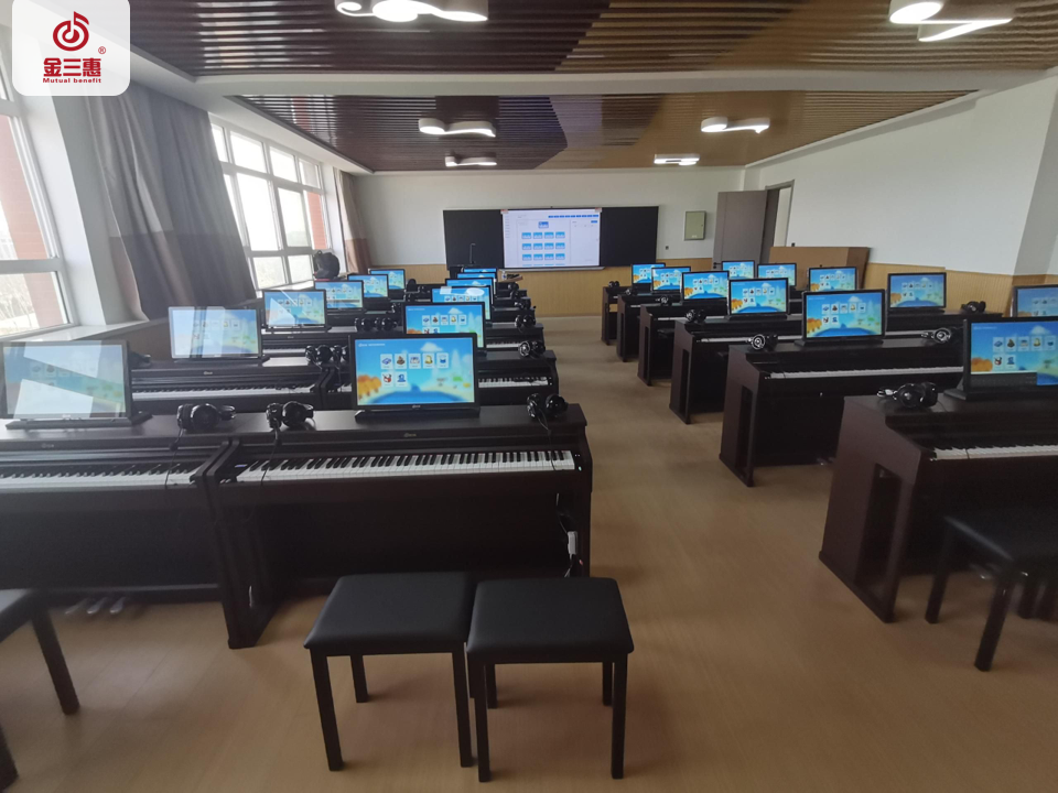 2024年3月,金三惠數(shù)字音樂教室為寧夏回族自治區(qū)石嘴山市平羅中學提供、安裝、培訓的25+1智慧音樂素養(yǎng)教室正式開始使用!配備了金三惠教學系統(tǒng)、電鋼琴、數(shù)字音樂教學儀等教學教具。