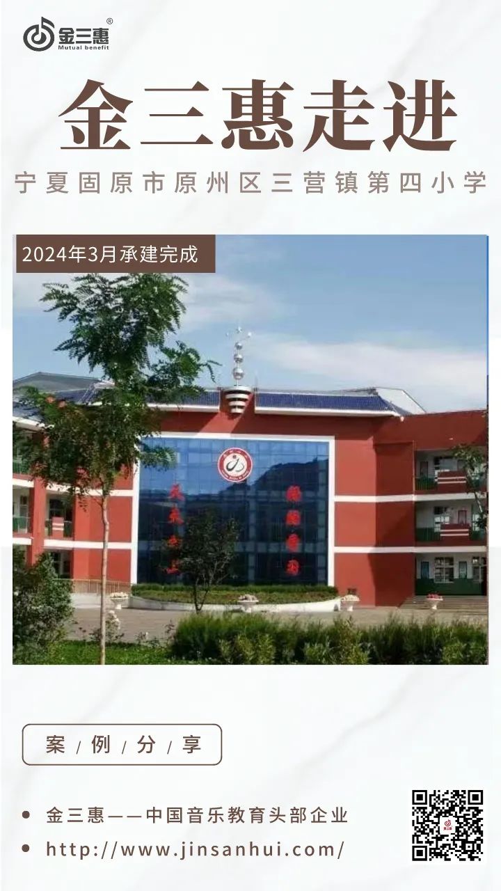 2024年3月,金三惠數(shù)字音樂(lè)教室走進(jìn)寧夏固原市原州區(qū)三營(yíng)鎮(zhèn)第四小學(xué),為學(xué)校提供了40+1的電鋼琴教室、常規(guī)數(shù)字音樂(lè)教室(國(guó)標(biāo))、舞蹈教室,配備了金三惠電鋼琴教學(xué)系統(tǒng)、電鋼琴、數(shù)字音樂(lè)教學(xué)儀等教學(xué)教具等。