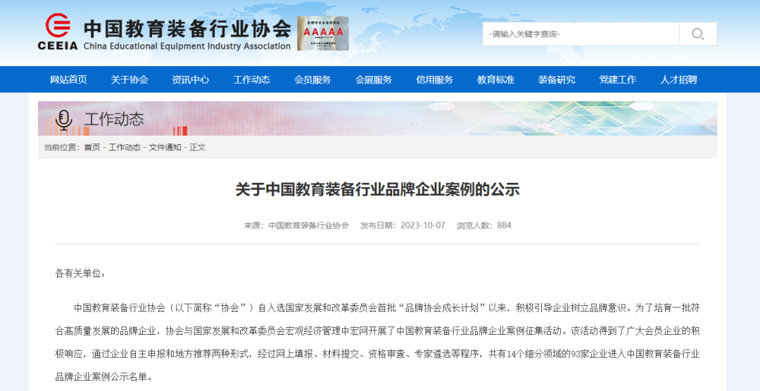 10月7日,中國(guó)教育裝備行業(yè)協(xié)會(huì)公示“中國(guó)教育裝備行業(yè)品牌企業(yè)案例公示名單”,北京金三惠成功入圍該名單。