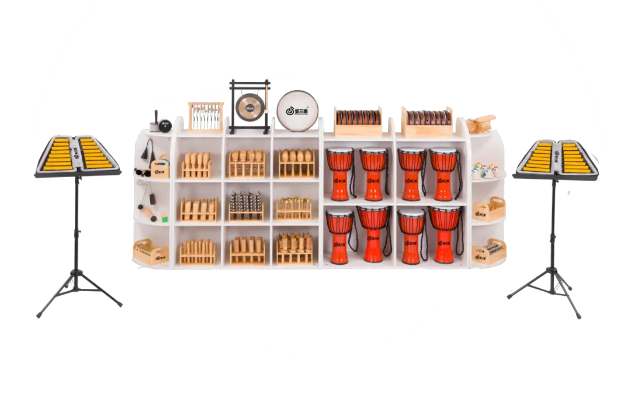 針對(duì)打擊樂(lè)器的管理與收納問(wèn)題,我們對(duì)小打擊樂(lè)器單獨(dú)進(jìn)行了收納盒的設(shè)計(jì),使學(xué)生拿放更方便,樂(lè)器管理更輕松,教室環(huán)境更整潔。