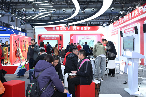 在場景化解決方案展區,智慧音樂素養教室與常規數字音樂教室(國標)形成互補布局。前者以智慧電鋼琴為載體,通過 AI 技術構建 “教師主導、學生主體” 的教學生態,適配中高職實訓需求;后者嚴格符合教育部器材配備標準,配備工藝精良的奧爾夫樂器與收納系統,木質樂器采用高密度櫸木與環保清漆,既保證音質精準,又兼顧學生安全。與此同時,美育教育平臺通過跨學科資源融合吸引眾多教育管理者關注,其建立的可視化測評體系可生成學生音樂素養檔案,為區域美育均衡發展提供數據支撐。