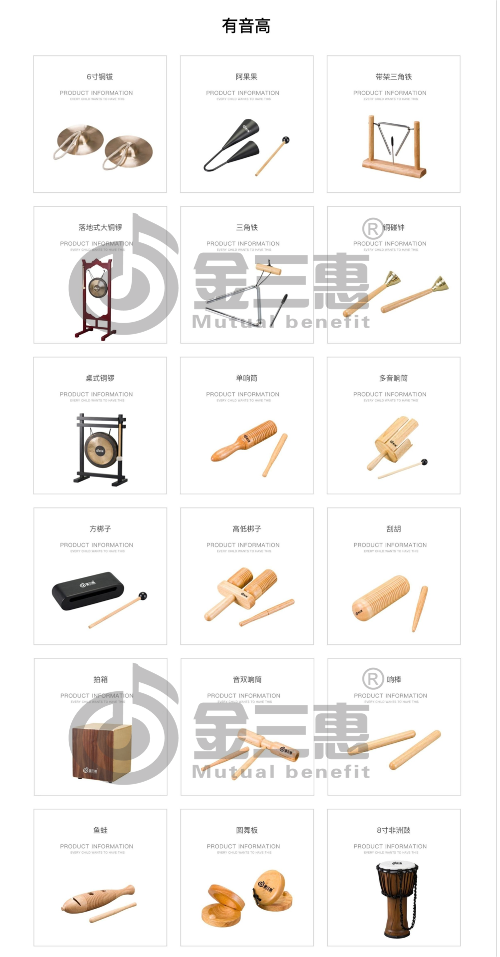 金三惠奧爾夫打擊樂器,秉承著易學、易用、易優的產品理念,所有的木質樂器均采用櫸木的材質。硬度和質感更佳、不僅耐用,而且可以讓木響類樂器發聲準確、清脆、均勻。所有的樂器的噴涂工藝,全面采用綠色環保漆,基本做到無色、無味。