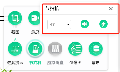 要根據(jù)曲譜的拍號選擇節(jié)拍機(jī)(節(jié)拍器)的預(yù)備拍哦~,點(diǎn)擊右下角的工具包中的節(jié)拍機(jī),有1-6拍可以選擇。