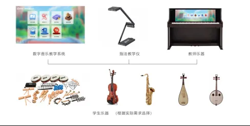 √ 配備了智慧電鋼琴及多種學生樂器,適用于小、中、高階段學生聲樂、樂器教學和音樂興趣小組的開展;