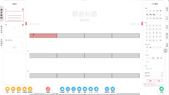 無論是五線譜、簡譜,還是鋼琴譜、合唱譜,只需進入【創(chuàng)作備課】模塊選擇相應的譜表,即可進入打譜頁面。
