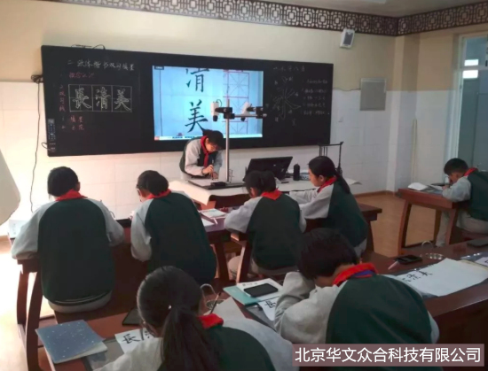 華文眾合智慧書法教室采用傳統的筆、墨、紙進行教學。內置豐富的資源以及科學的課程體系,即使在學校缺乏專業書法教師的情況下,學生們也能夠正常上課。通過直播系統,學生在臨摹臺前可以近距離、多角度、清楚地觀看老師在講臺示范書寫的字;通過交互式數字書法臨摹臺和內置課程講義系統,學生可以觀看到書法名家的書寫視頻,示范講解書法的執筆、運筆,分析漢字的間架結構,從整體到局部解讀書法作品,更好地理解書法的精髓,實現了“書法名家進課堂”以及“一對一教學”的效果,大幅提升書法教育的質量和效率。