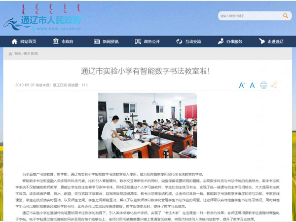 為全面推廣書法教育,2020年1月,內(nèi)蒙古通遼市實驗小學(xué)智能數(shù)字書法教室投入使用并對學(xué)校老師進(jìn)行培訓(xùn)。據(jù)《通遼日報》報道,該小學(xué)是全市首家使用現(xiàn)代化書法教室的學(xué)校。