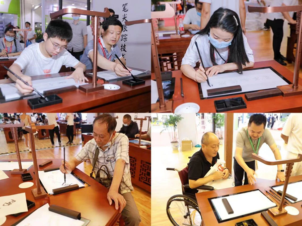 領導蒞臨華文眾合展位體驗指導華文眾合智慧書法教室