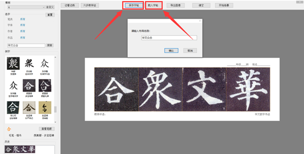 (9)排版好的字帖可以保存為模板,下次上課時點擊載入字帖,可直接進行練習;