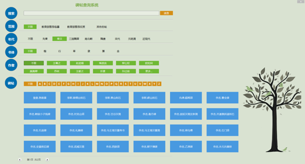 碑帖資源在華文眾合智慧書法教學系統“碑帖”欄目中,碑帖有三種查詢方式,以下是各操作步驟:
